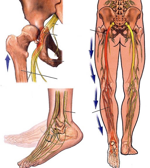 – Cảm giác đau lan từ lưng xuống, lệch sang một bên mông, xuống đùi, gót chân. Hoặc thấy đau ngược lại, từ gót chân lên.